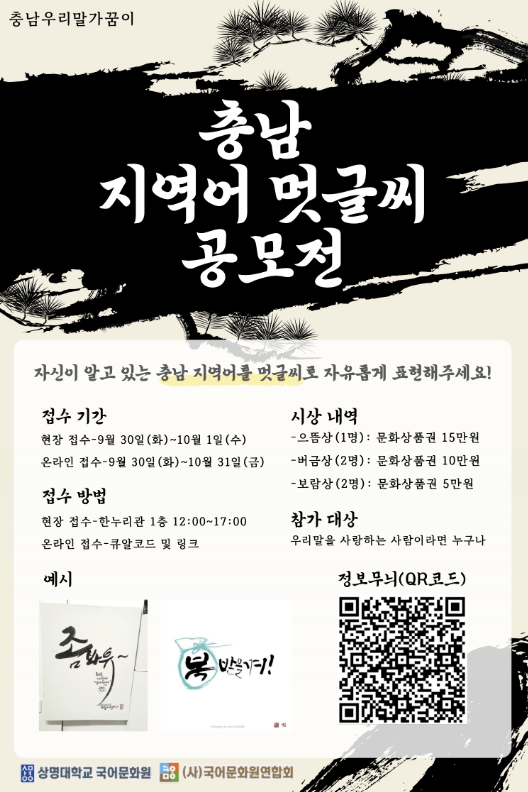 충남 지역어 멋글씨 공모전을 운영 중에 있습니다. 관심있는 분들의 많은 관심과 참여 부탁드립니다.
